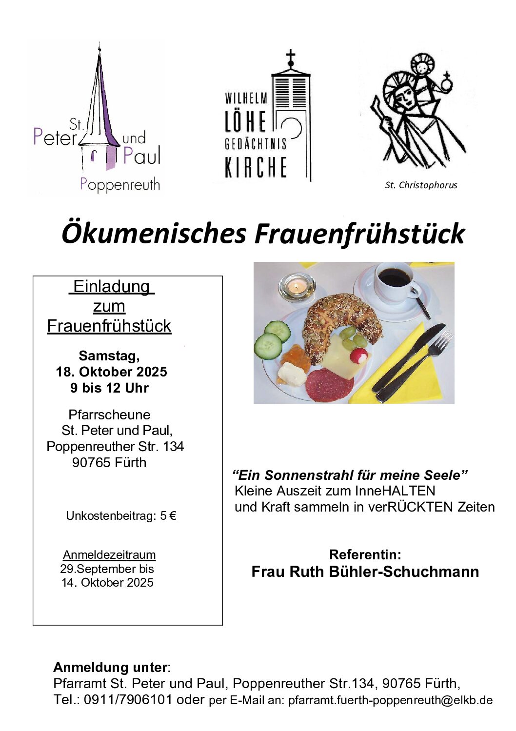 Wir laden ganz herzlich zum 1. Ökumenischen Frauenfrühstück in Poppenreuth ein.