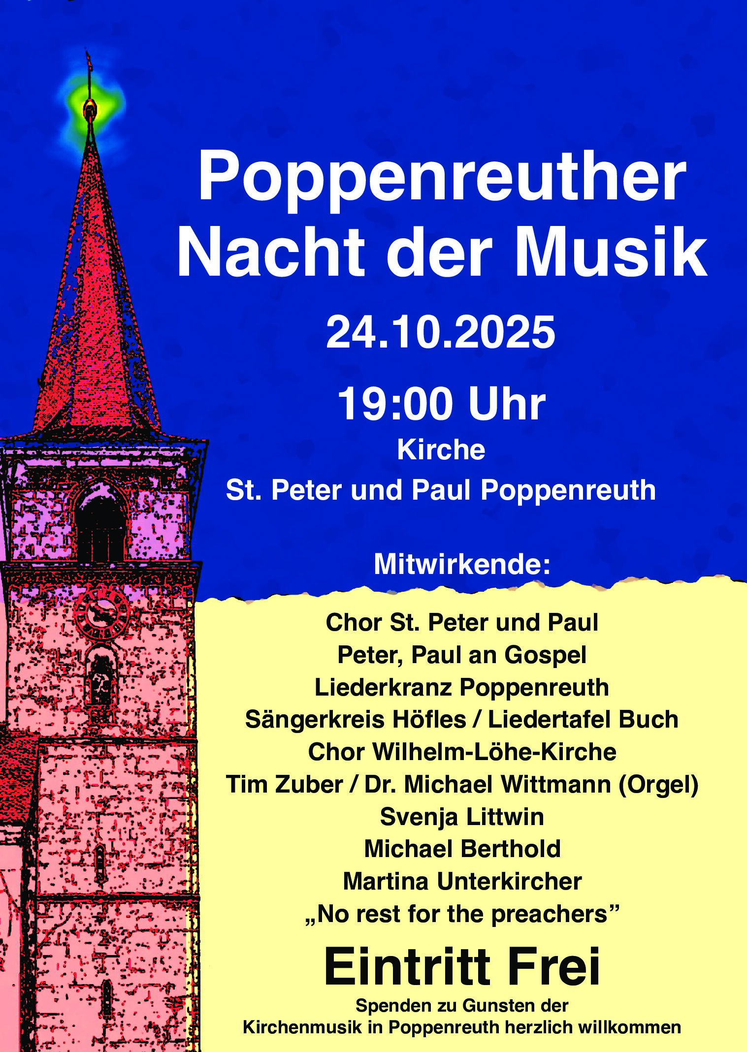 Wir laden zur nächsten Poppenreuther Nacht der Musik ein.